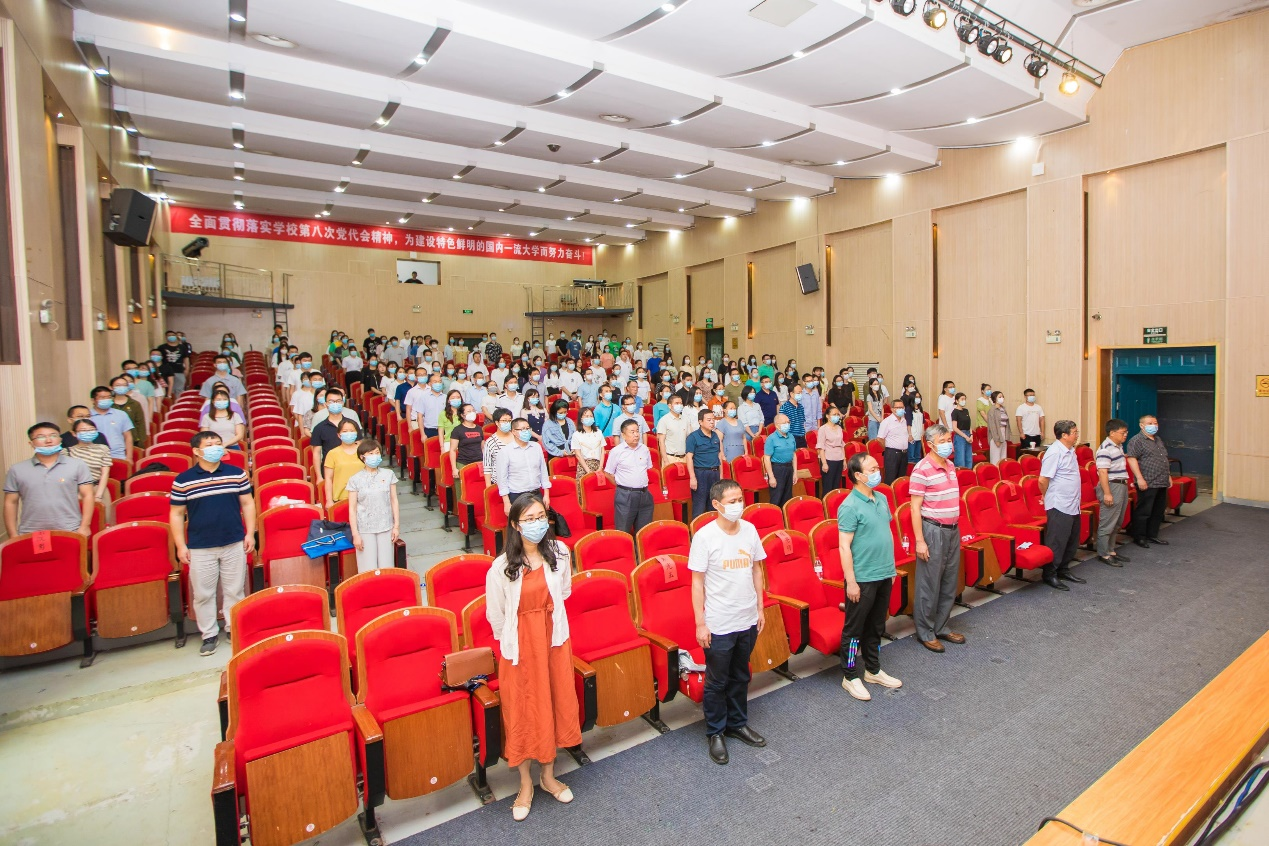 上午9时许,全体起立,奏唱《中华人民共和国国歌》。