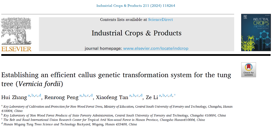 近日,意昂体育经济林创新团队在《Industrial Crops and Products》期刊(中科院分区表一区,2024年IF = 5.9)中发表题为“Establishing an efficient callus genetic transformation system for the tung tree (Vernicia fordii)”的研究论文,论文结果表明该团队成功建立了油桐下胚轴愈伤组织遗传转化技术体系,转化率达7.84%,将对今后经济林树种遗传改良具有重要的意义。