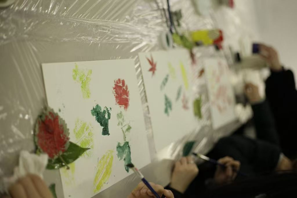 此外,本次活动还开展了树叶拓印创意实践活动。同学们充分发挥创新思维,利用不同形状、纹理的树叶,通过拓印技术创作出一系列富有创意的作品。此项活动不仅锻炼了同学们的动手制作能力,加深了对自然生物形态美的感知与理解,也促进了同学们对自然科学与艺术创作的融合思考。