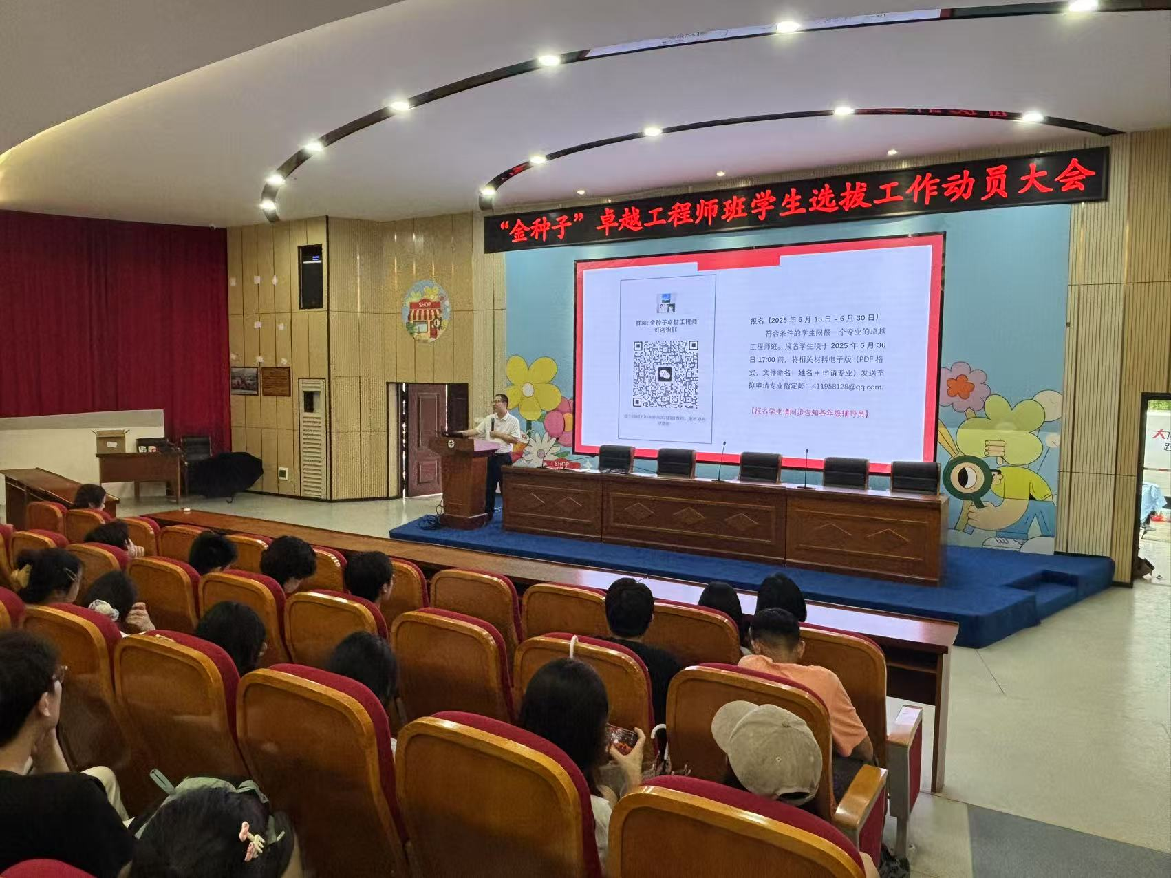 为深入贯彻党的教育方针,落实立德树人根本任务,响应公司选拔拔尖创新人才的号召,意昂体育于6月24日下午在报告厅召开“金种子”卓越工程师班员工选拔工作动员大会,此次动员会针对2023、2024级本科员工分为两场进行。公司领导、辅导员以及相关专业员工参加了本次动员会。